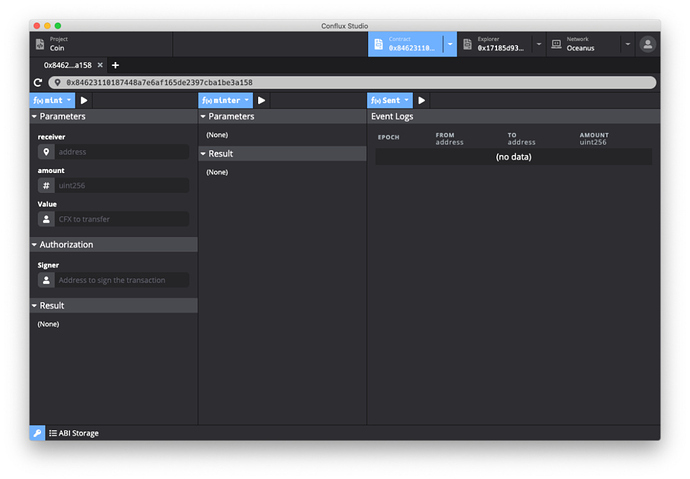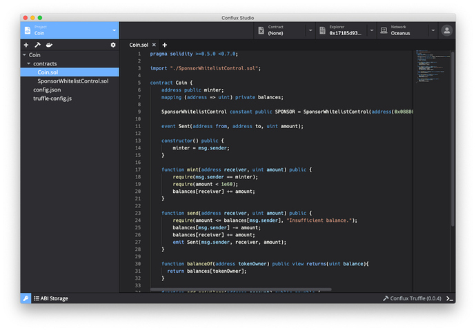 Conflux Studio 是一个帮助开发者快速开发 Conflux 智能合约的集成化开发环境。Conflux DApp 开发教程将使用 Conflux Studio 在 Oceanus 网络下开发一个简单的代币应用 Coin。