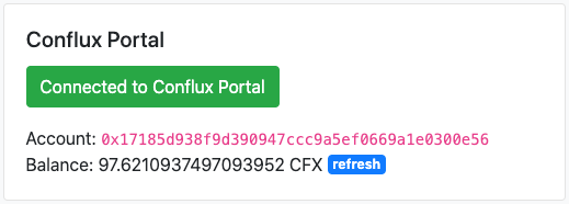 负责渲染 Conflux Portal 的连接信息,并提供了连接 Conflux Portal 的交互按钮。