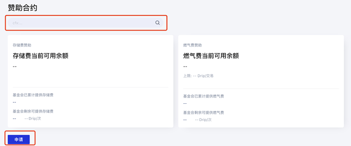 在搜索栏内填入想申请赞助的合约地址,点击“搜索”