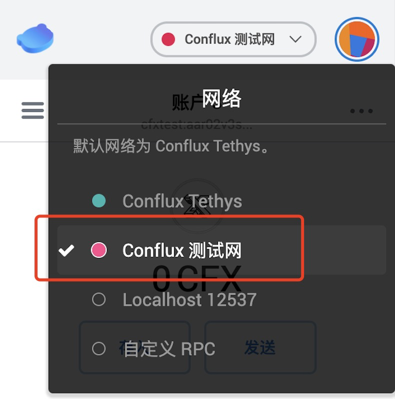 在 ConfluxPortal 中切换至 Conflux 测试网