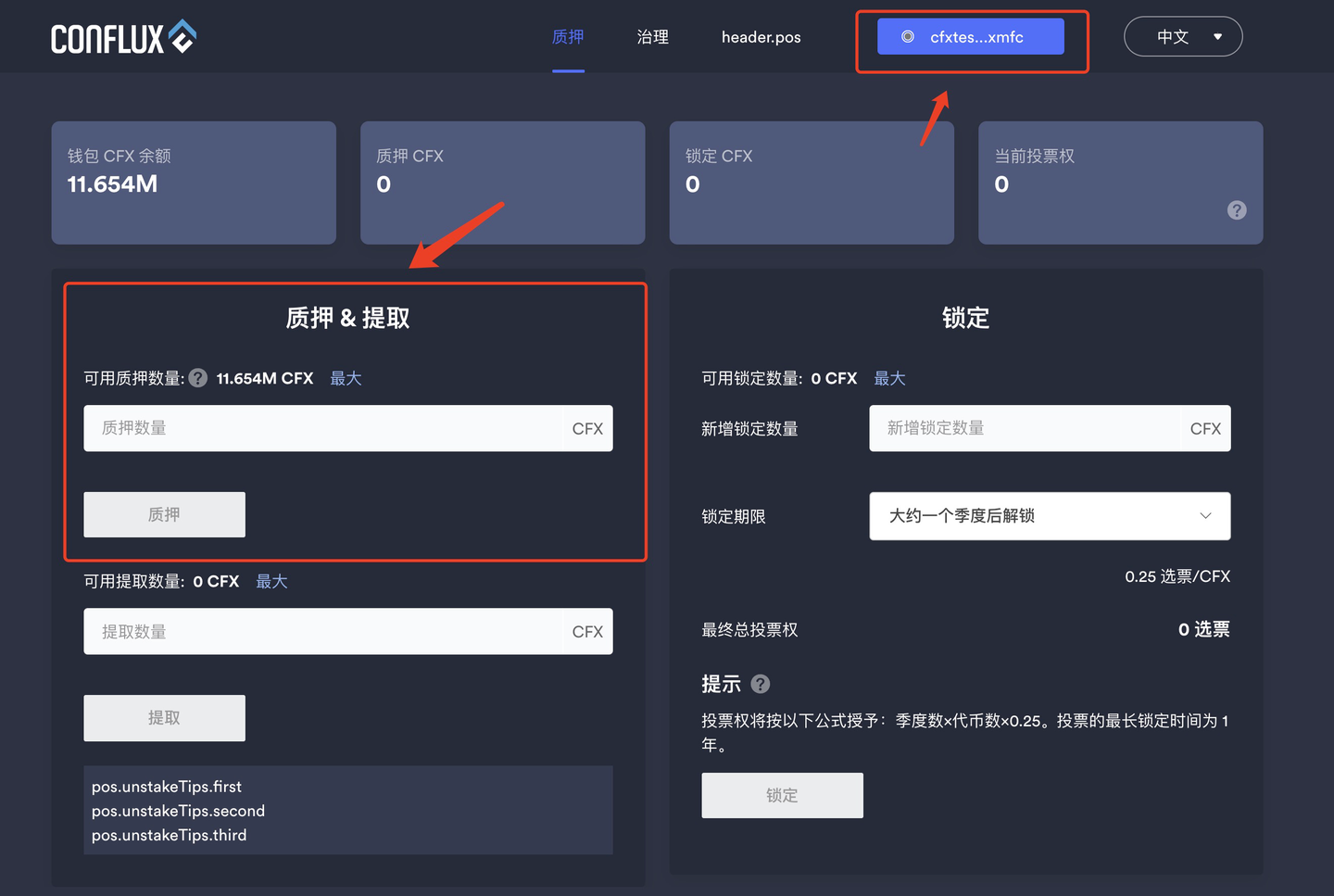 质押成功后,页面上栏选择“PoS锁仓”